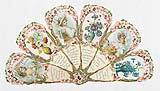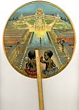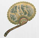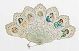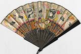 Hand fan showing various forms of head wear. For the other side, see Image 26.