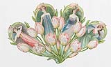 Sayings from William Shakespeare, William Wordsworth, Samuel Taylor Coleridge, and William Drummond appear on each of the sections of this fan. Their words relate to the flowers illustrated.