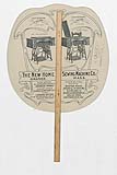 Reverse of fan in Image 54 with New Home Sewing Machine Co. advertisement listing its many locations and images of its sewing machines and factory.