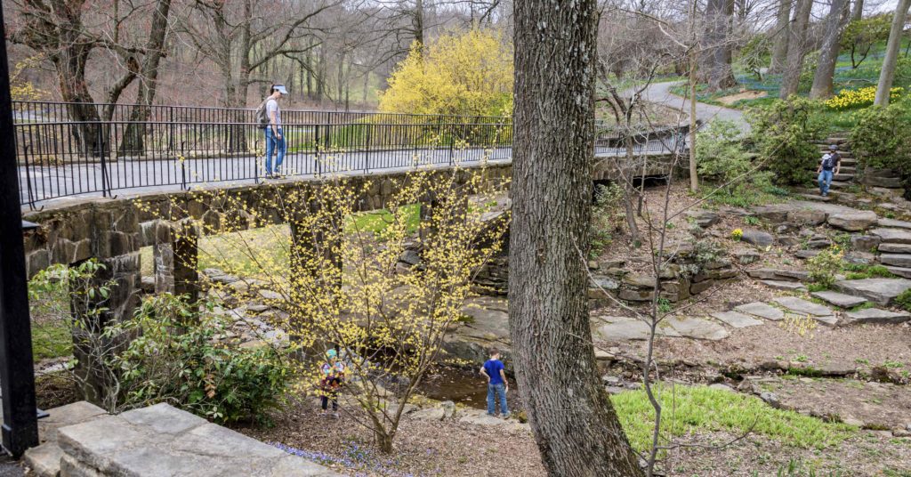A walk across the Quarry Garden bridge offers one of the most interesting and beautiful perspectives at Winterthur, an overhead view of a charming, unique area.