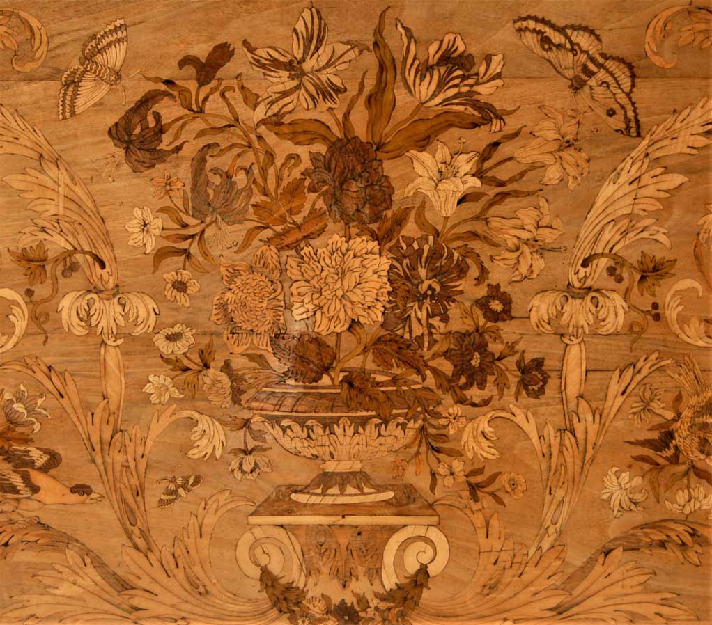 The Wonder of Wood is a unique collaborative conference that will explore the history and artistry of inlay and marquetry within America and Europe. In both techniques, artisans apply small pieces of different species of wood to create pictures or patterns on furniture. The basic concept has a long and illustrious past. “The woodworker’s desire to decorate wooden objects,” noted a famed marqueter, “is as old as man’s desire to work with wood.” Inlay and marquetry traditions existed in ancient Egypt, Greece, and Rome, were revived during the Renaissance (as seen in the glorious Gubbio studiolo at the Metropolitan Museum of Art), and have flourished ever since. Over the centuries, the complexity of the ornament has varied enormously, from simple bands of light and dark stringing to outline the drawers of a plain desk of the 1790s to breathtaking trompe l’oeil imagery on Dutch and French cabinets a century earlier. By focusing on the years from 1600 to 1900, The Wonder of Wood will consider an especially rich period in European and American furniture history during which craftsmen produced many of the grandest inlaid objects ever made.