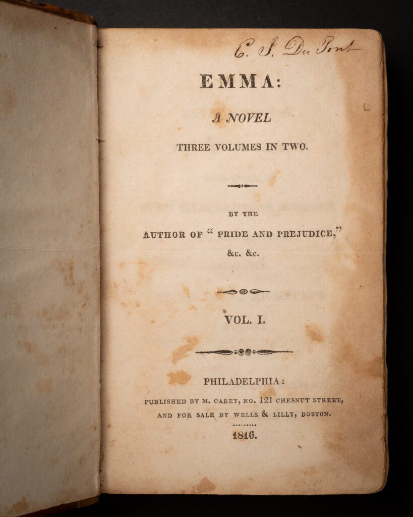 Interested in viewing Winterthur’s copy of Jane Austen’s Emma? Contact the Winterthur Library at reference@winterthur.org, but don’t delay. Emma will be traveling to the Morgan Library in New York for their exhibition A Lively Mind: Jane Austen at 250 from May through September 2025.