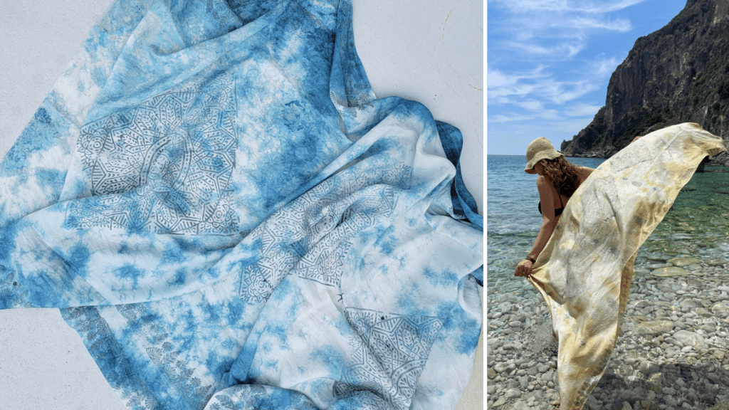 Maria Maurio has been creating artisanal textiles since 2017. Hand dyeing in small batches and hand block printing using antique wood blocks, which are her hallmark, are often combined with Japanese resist to create one-of-a-kind Ojetti de arte to wear. Working solely with sustainably sourced natural and botanical dyes along with foraged and food waste each unique design has a rich story to tell from the origins of natural dyes, the textiles and employed heritage craft.