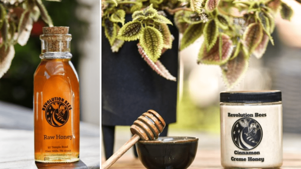 Revolution Bees is a small local business built by three beekeepers from Delaware and Chester counties, focusing on the promotion and education of responsible, sustainable beekeeping. They started out as hobby apiarists, and now they are one of the top resources for local honey and artisanal honey products.
