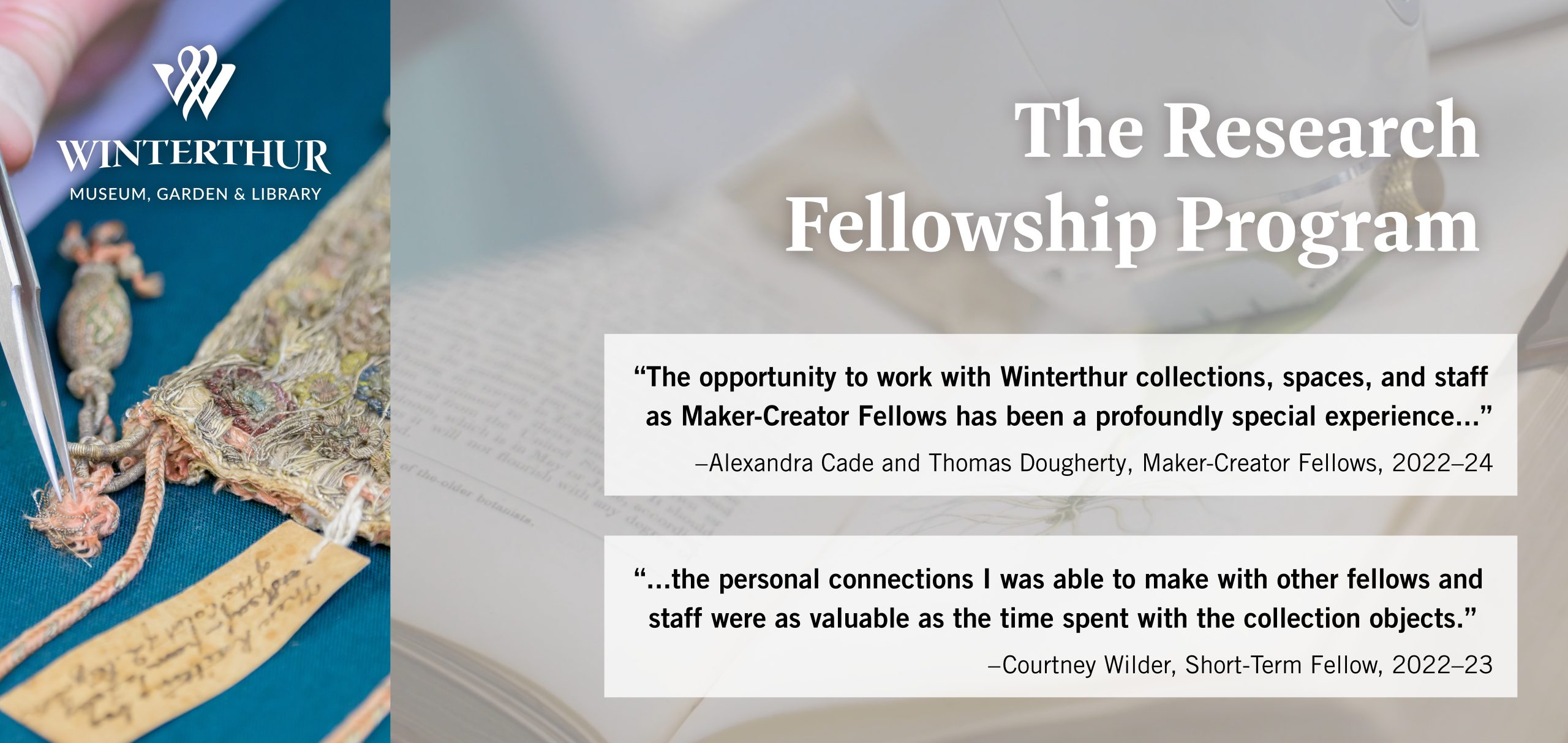 “The duet of primary source research and object-driven house tours grounded my time and provided me with a solid, sturdy footing for the next step of translating research into artworks. Without Winterthur’s Maker-Creator Fellowship and all that it encompassed, I know my project might not be a reality.”