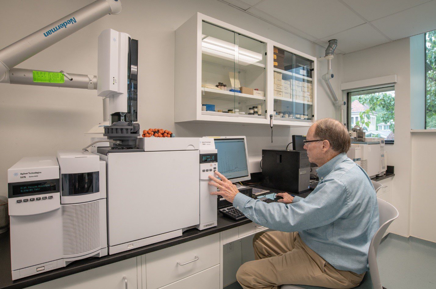 One of only 18 museum science labs in the country, the Winterthur  SRAL houses 12 pieces of state-of-the-art analytical instrumentation that can analyze materials on a molecular or elemental level. When the SRAL opened in 1969, however, it housed only one unique instrument: an X-ray fluorescence (XRF) spectrometer, built by Winterthur scientist Vic Hansen, that was large enough to accommodate whole objects. Because other XRF instruments of the day could analyze only small samples of material,  institutions across the country began seeking Winterthur’s help to examine their precious objects, which established the SRAL as a leader in the field.