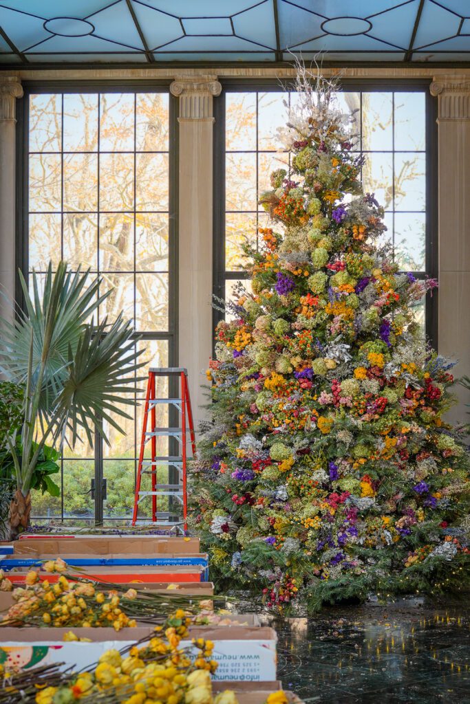 Inspired by Henry Francis du Pont’s love of flowers, Winterthur’s Dried-Flower Tree is a phenomenon of color, texture, and floral artistry. Thousands of brillant spring and summer blooms are perfectly preserved throughout the year, reprising their roles each holiday season to delight spellbound visitors.