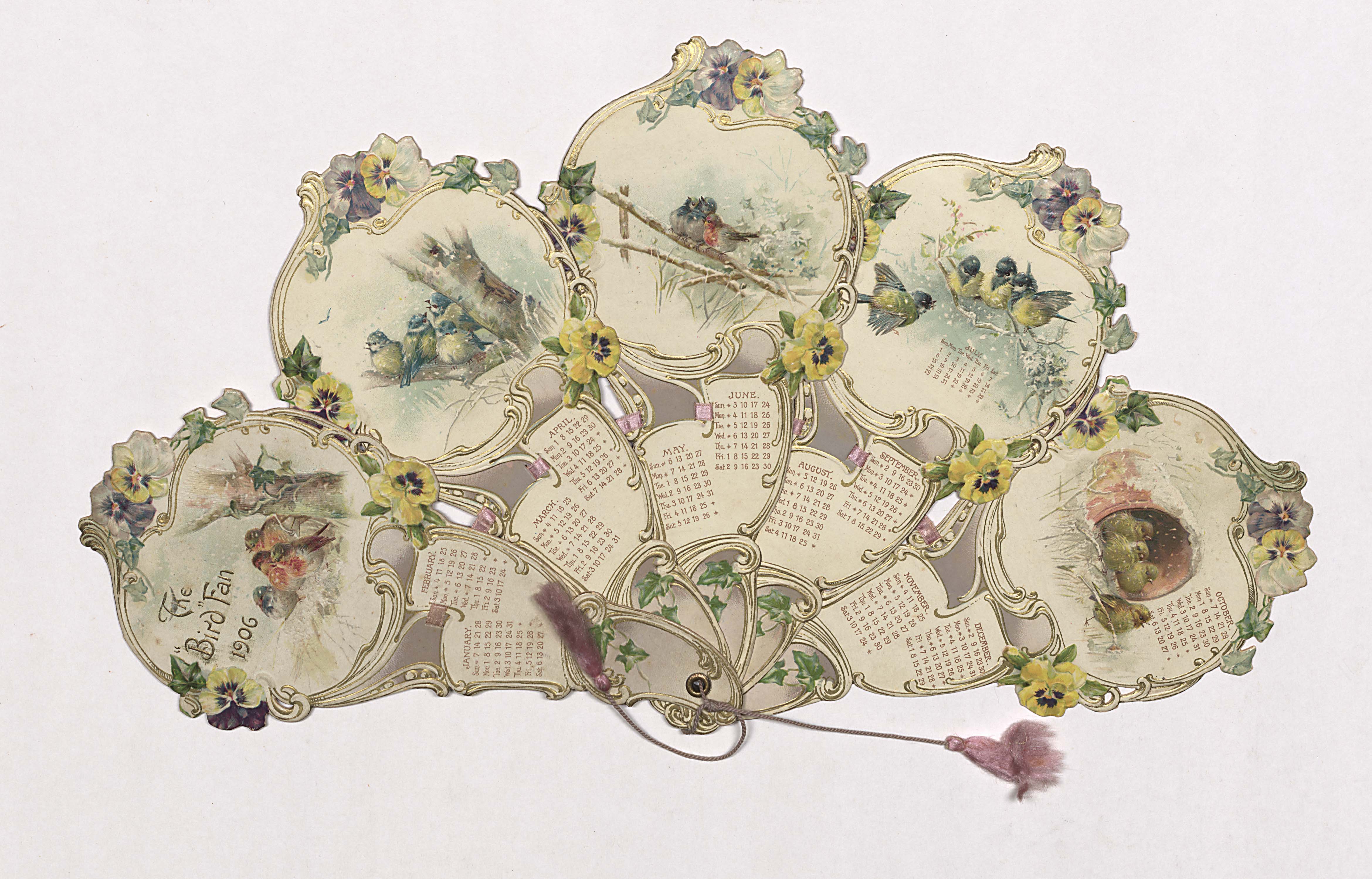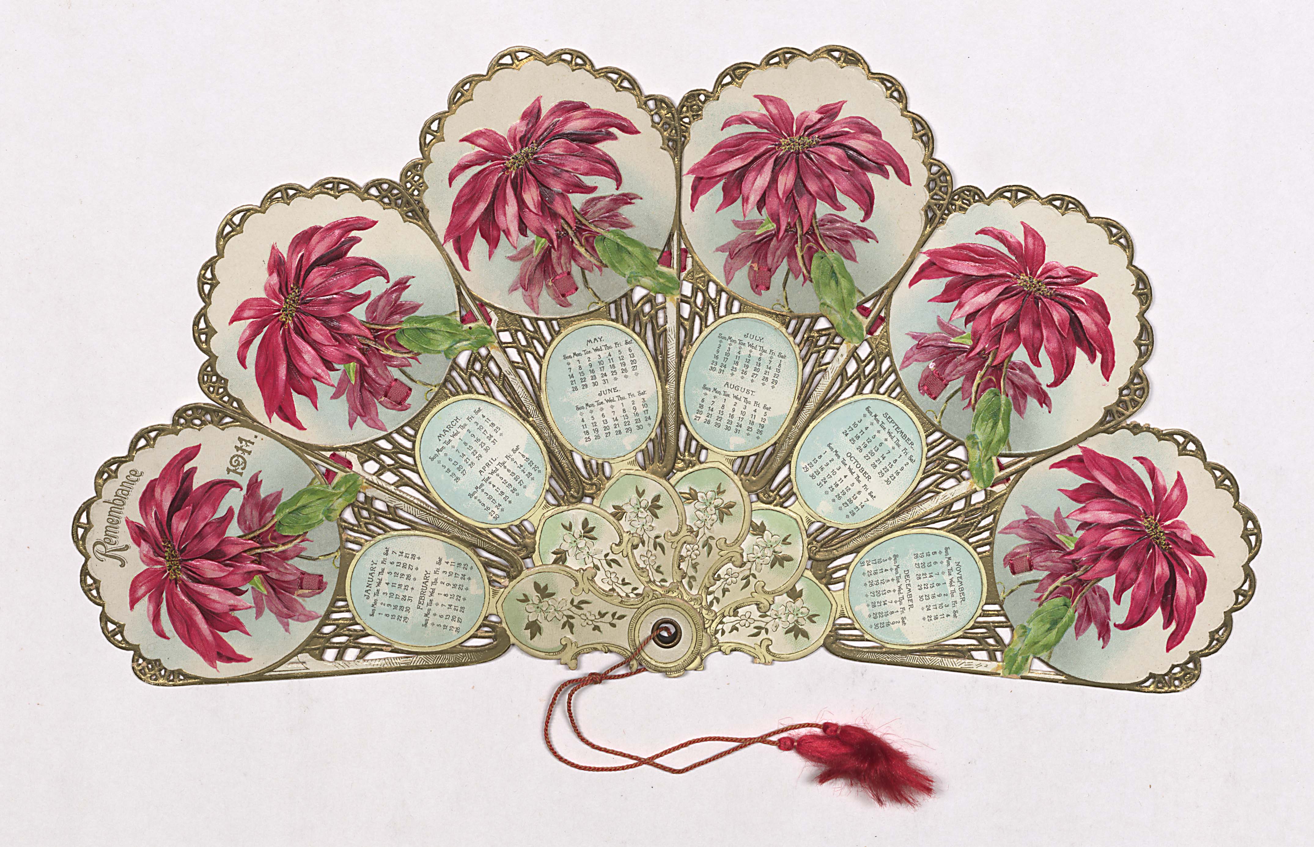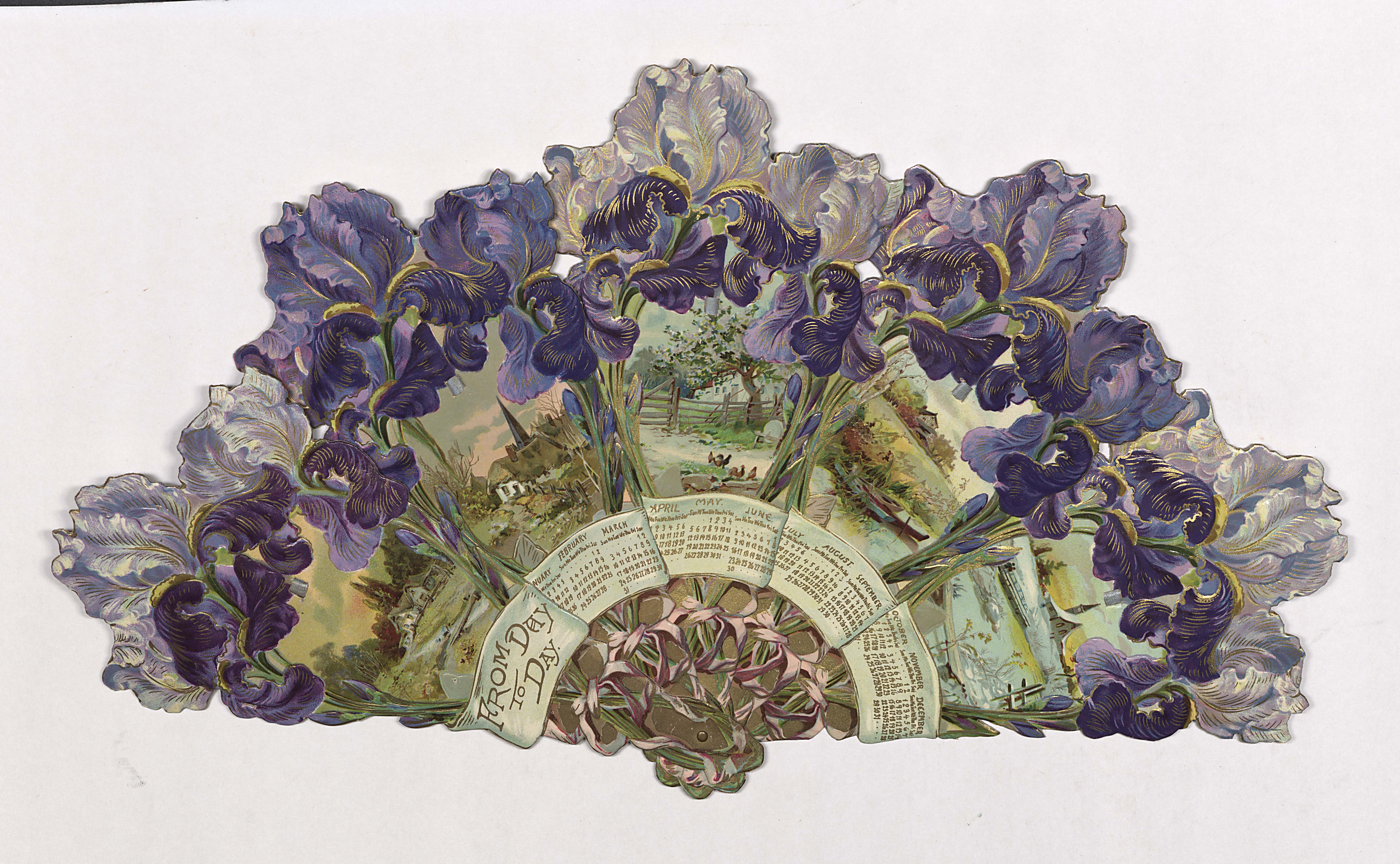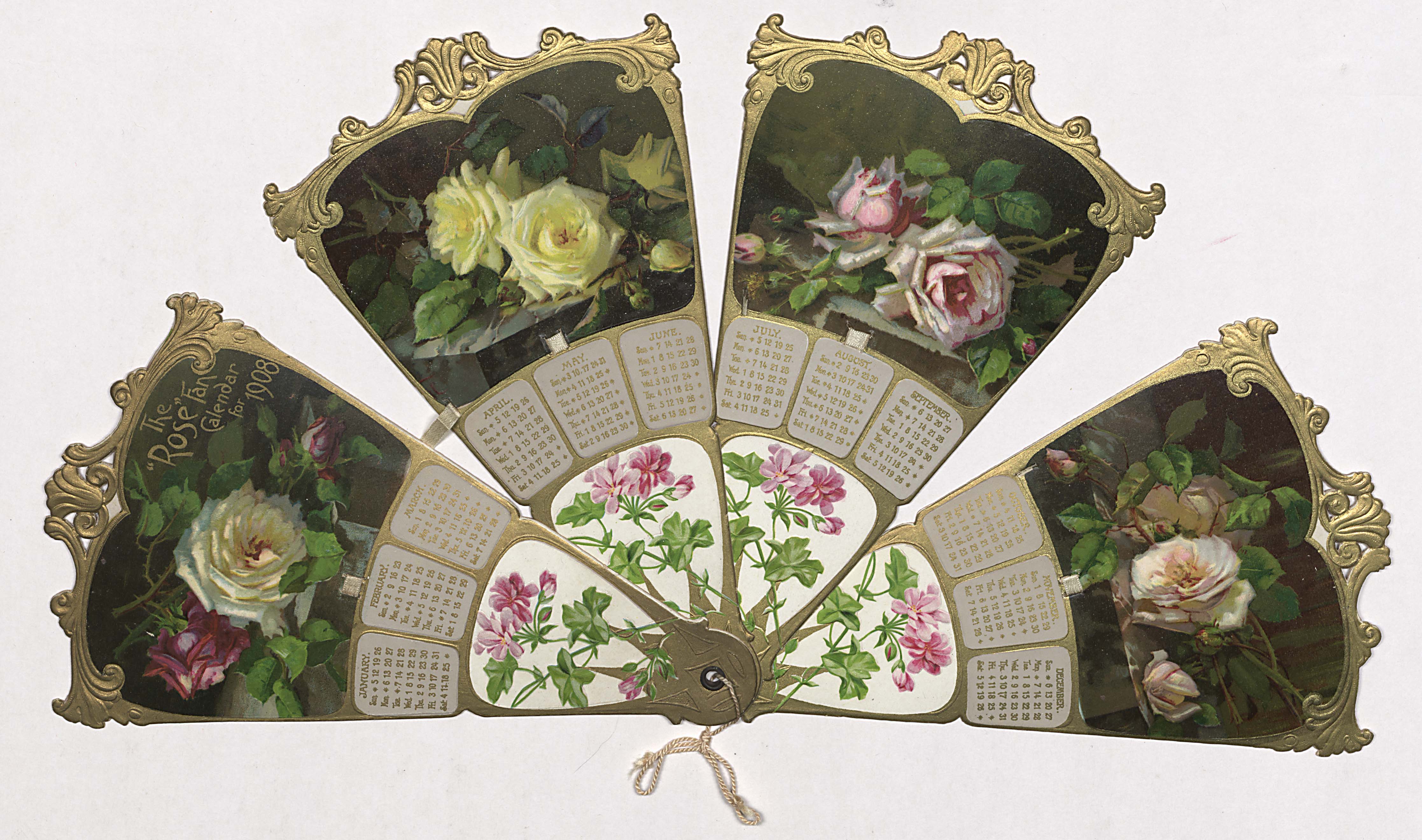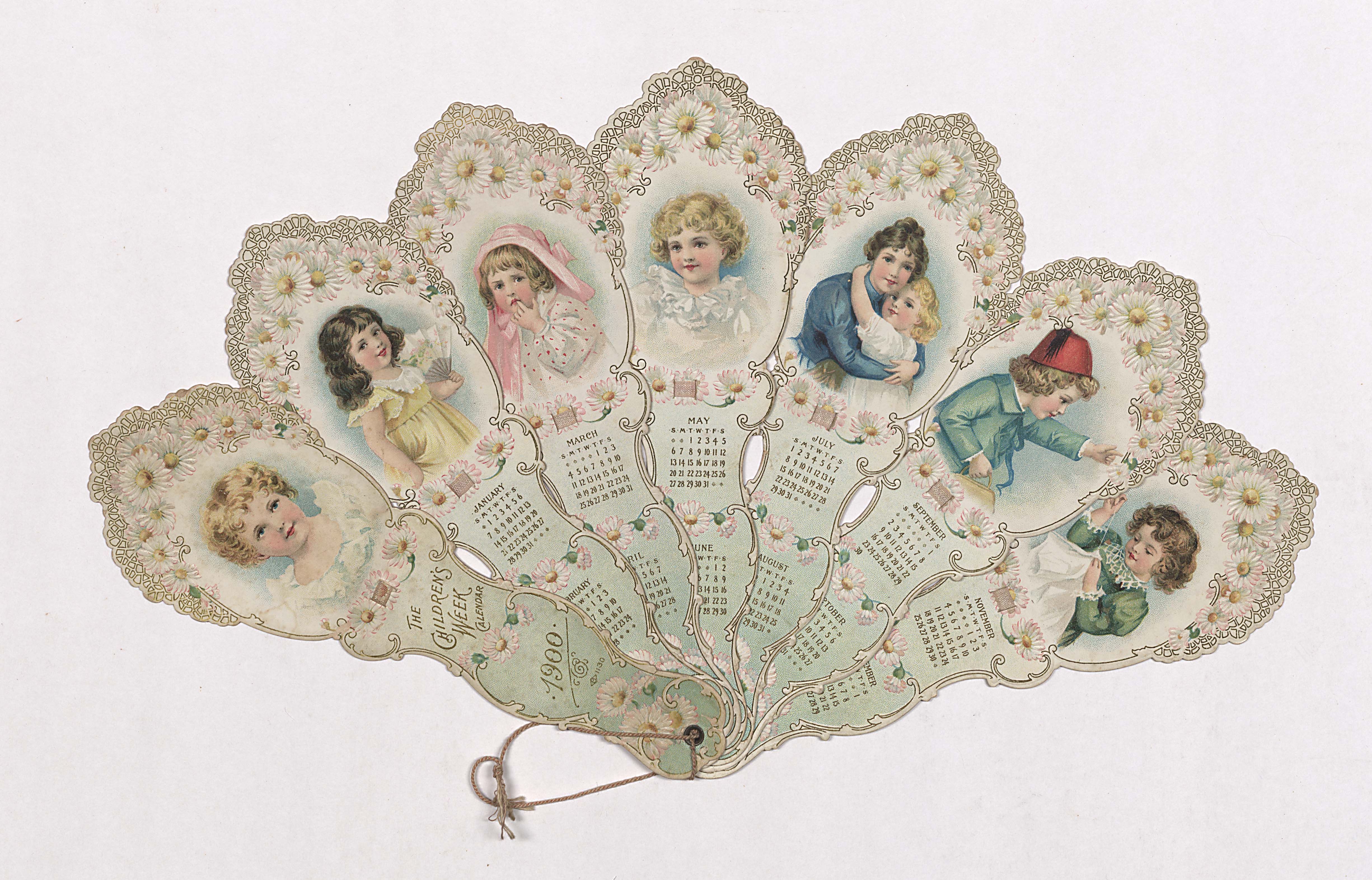 From Day to Day calendar fan for an unidentified year in the early 1900s.