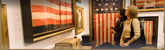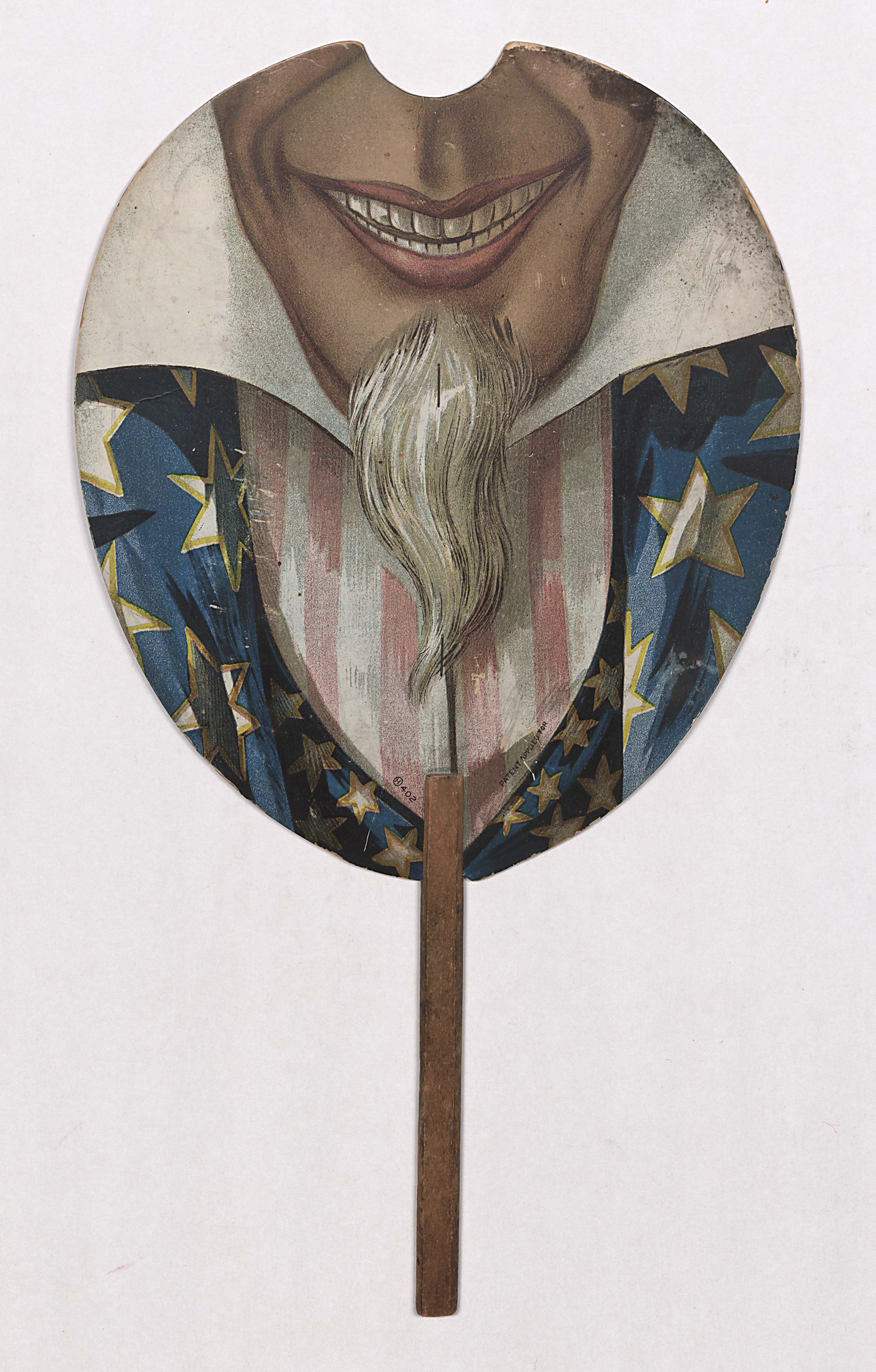 Fan on a stick showing the bottom of an Uncle Sam face. It could double as a mask, hiding a person’s face from the nose down. For the other side, see Image 45.