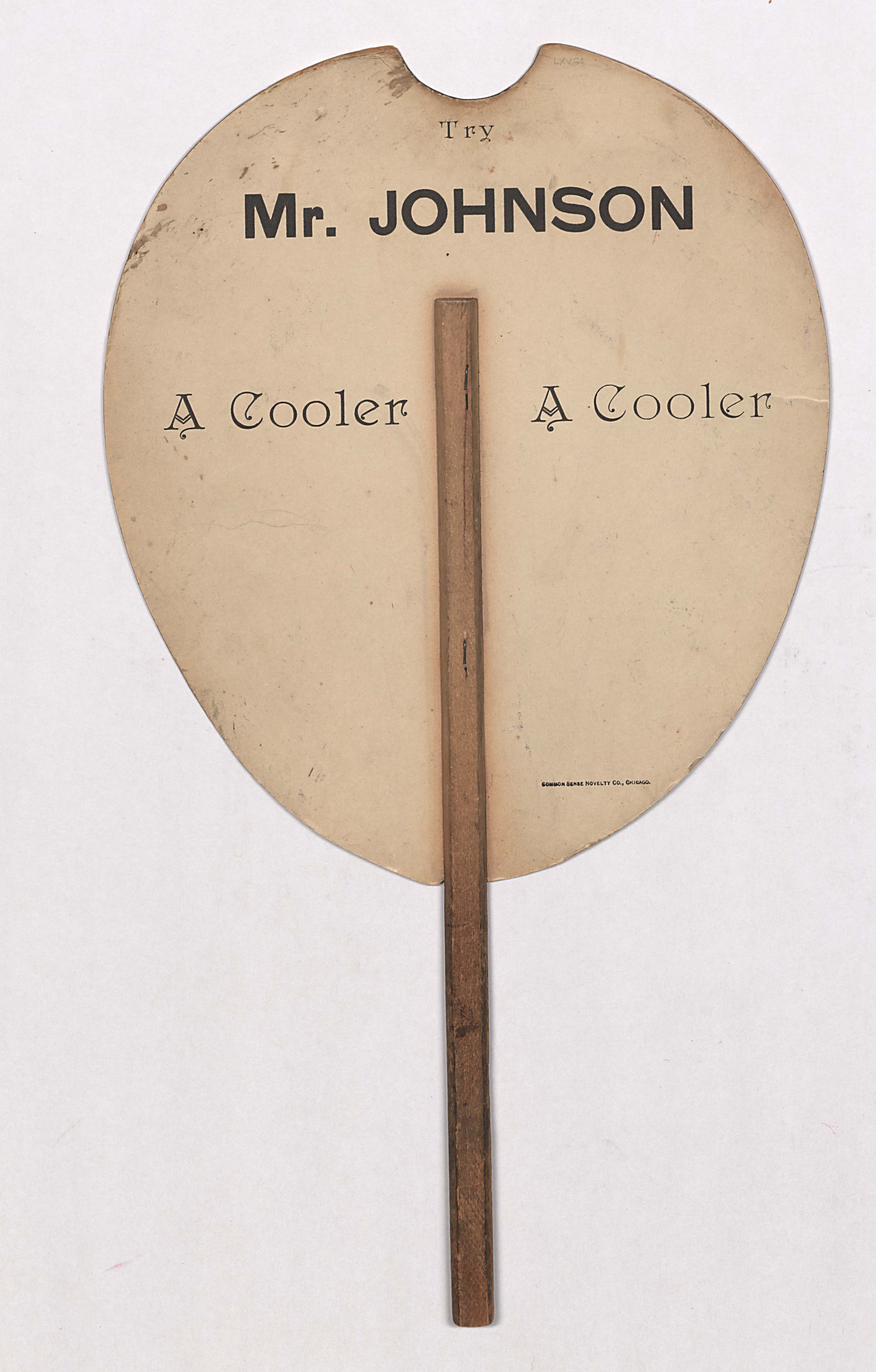 Reverse of fan in Image 44: Try Mr. Johnson, A Cooler, A Cooler. Common Sense Novelty Co., Chicago.