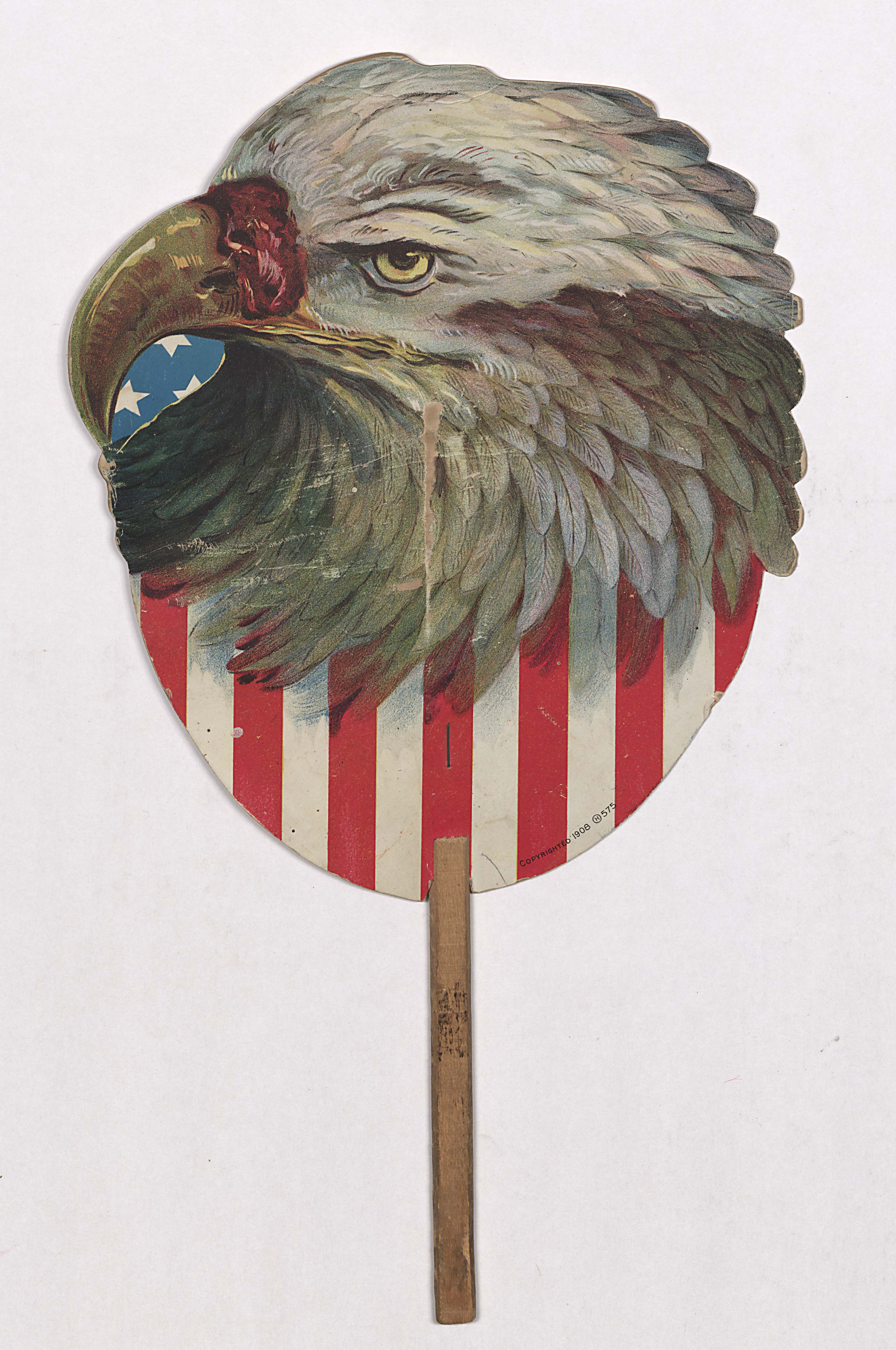Fan showing an eagle superimposed on the stars and stripes, copyrighted in 1908. For the other side, see Image 49.