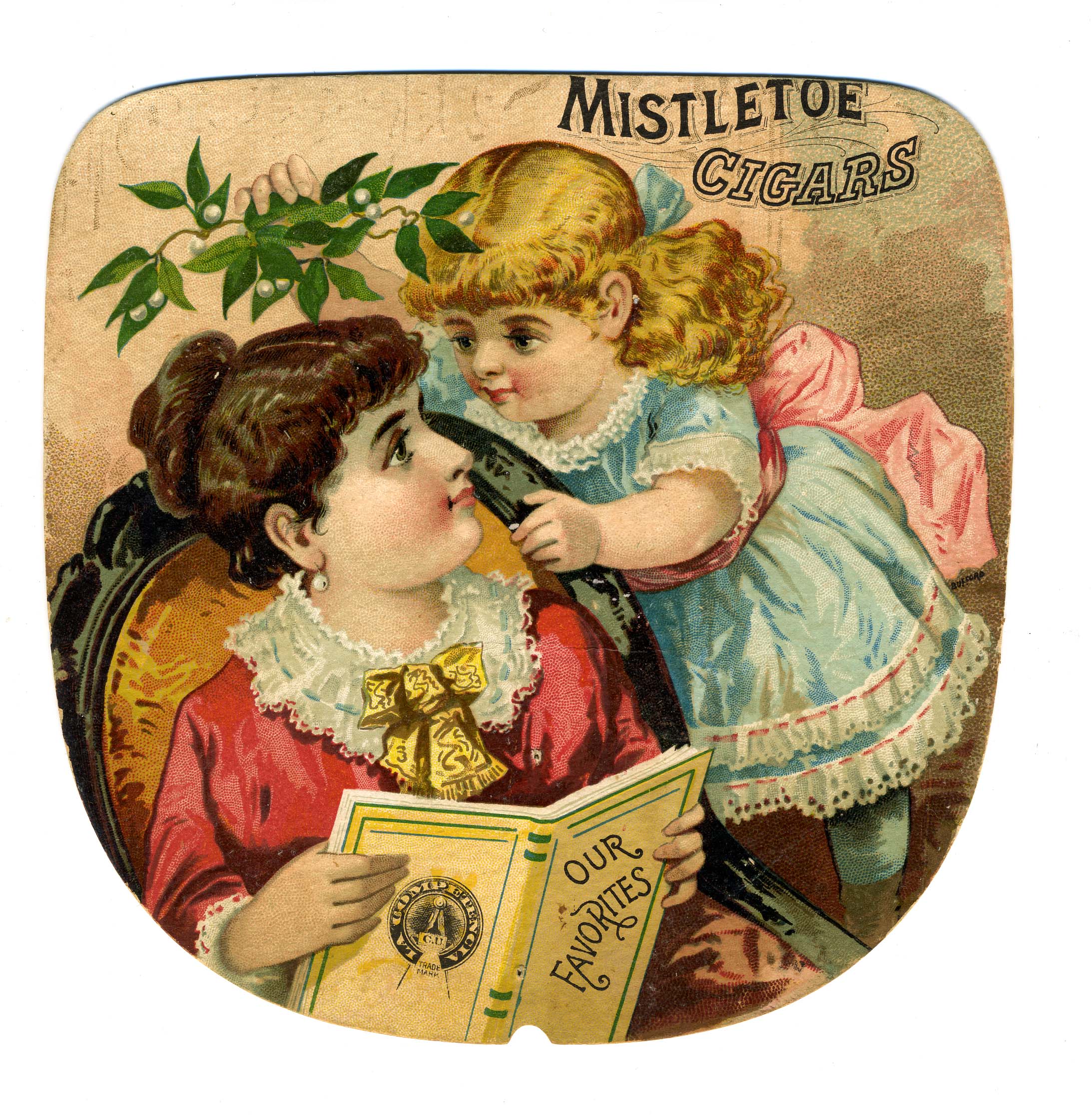Hand fan without its handle, advertising Mistletoe Cigars.