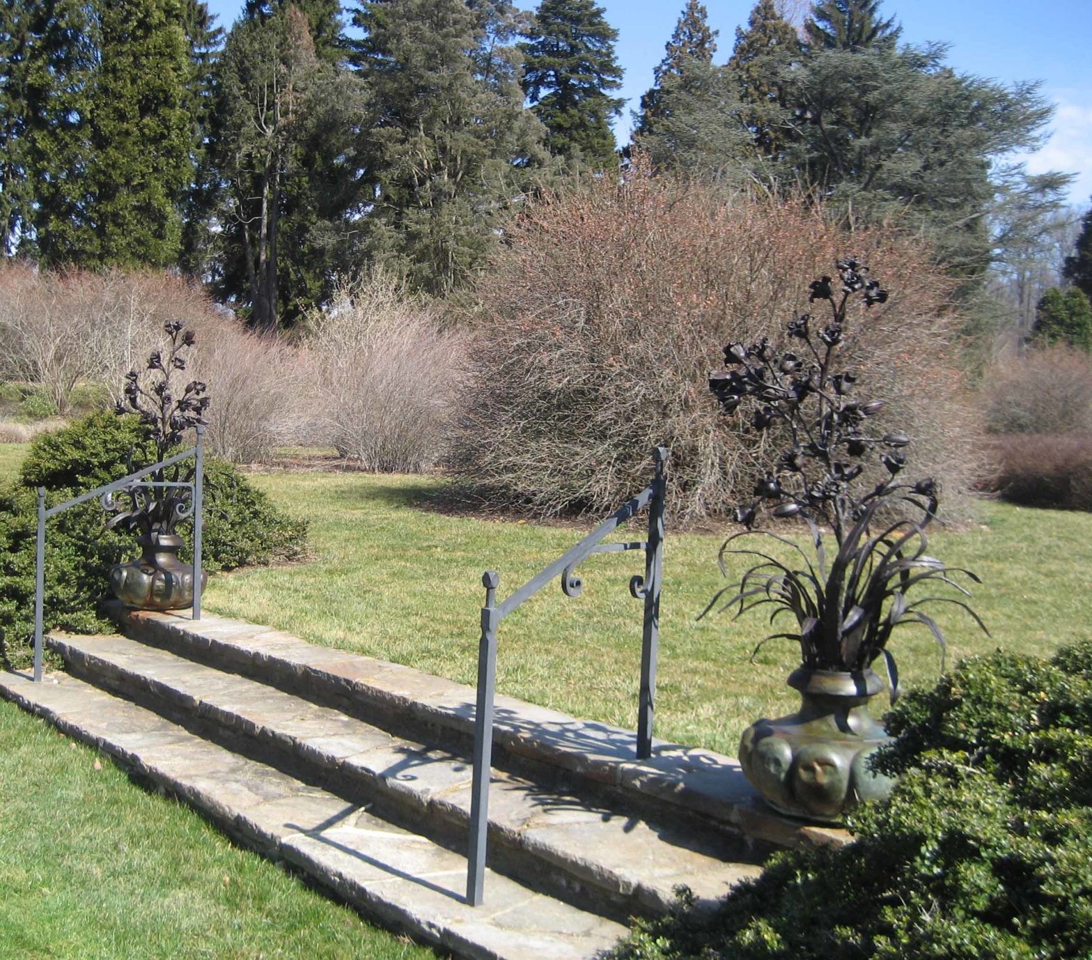 Some might think there’s a simple solution to saving outdoor sculpture that’s at the mercy of the elements: bring it inside. But H. F. du Pont wanted these particular sculptures—a pair of spectacular iron lilies—on display where they have been for decades, flanking the stairs to the Sundial Garden. Removing them from their location would betray du Pont’s design intent for this area of the Winterthur Garden.