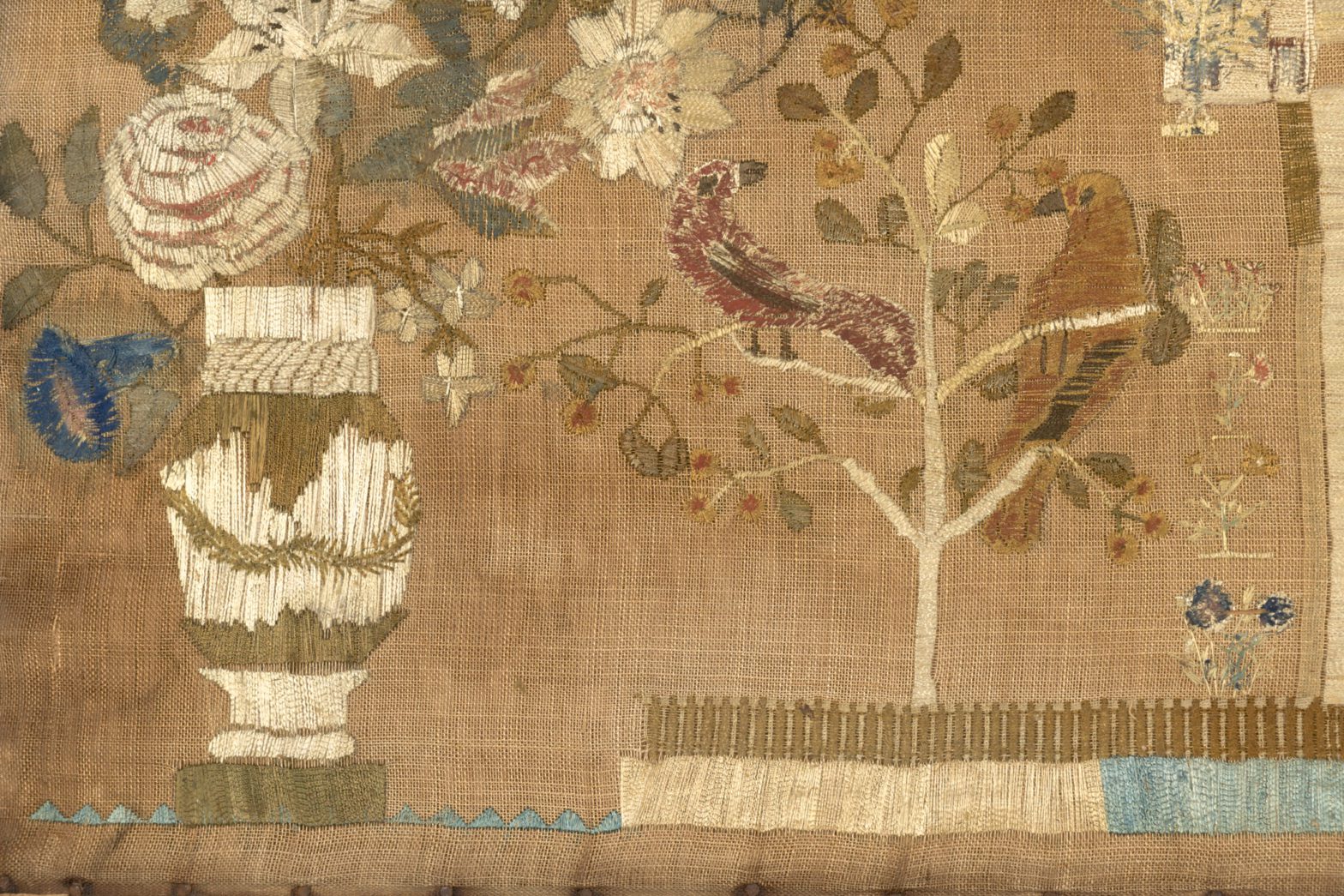 The Needle’s I: Stitching Identity examines how we work with needles and thread to create a sense of self. From historic samplers and clothing to contemporary pieces, the exhibition presents stitchers and stitchery from the 18th century to the present day and explores these makers, their marks, and their stories through themes of family, memory, and craft tradition. The exhibit is inspired by The Needle’s Eye: Women and Work in the Age of Revolution, Marla Miller’s important examination of 18th and early 19th-century identity, gender, and craft and moves it to the present day.