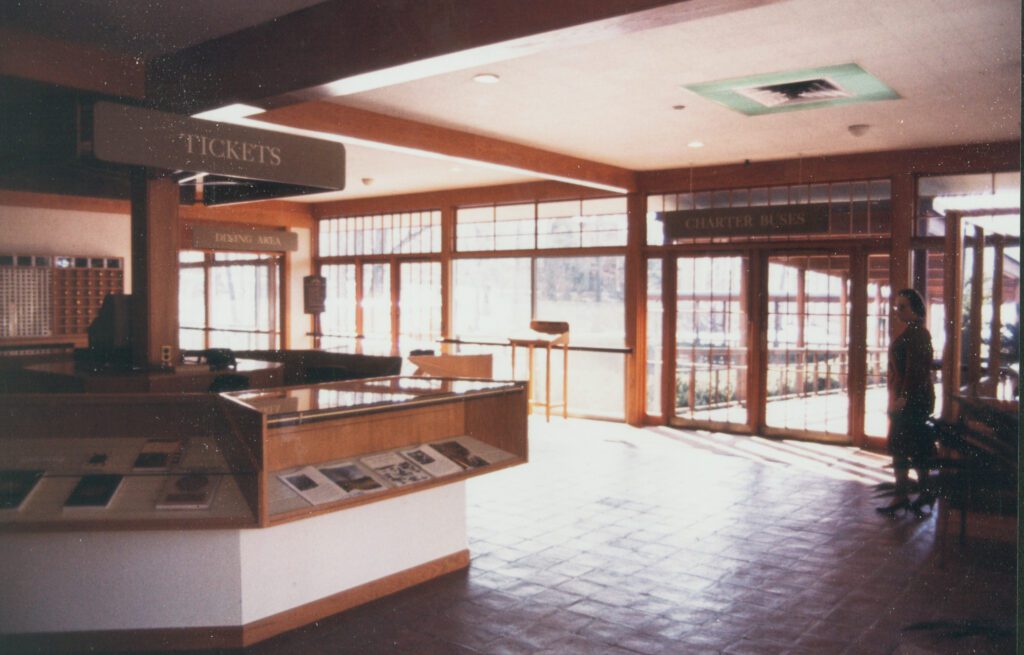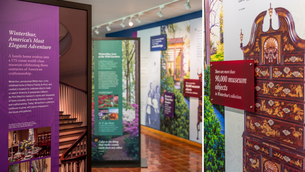 When the Pavilion opened, it included a ticketing desk (in a different formation), a cafeteria, and an orientation space that later was the bookstore (1977–2020). This month, Winterthur will again have an orientation gallery in the very same space. We are eager to welcome you and all who arrive in the Visitor Center into the gallery for a brief introduction to Winterthur and all it has to offer. Stop in and take a look!