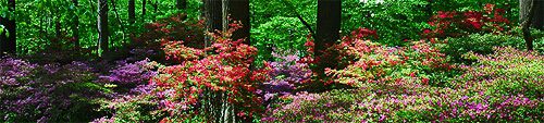 Point-to-Point weekend is often the high point of our azalea display and, already, Members and azalea lovers have started calling to find out if this will be the weekend when they reach their peak. Each day’s weather has an effect on the flowering of our azaleas – cool days tending to retard flowering and warm days accelerating the bloom. The photograph above was taken April 29th in a corner of Azalea Woods that comes into flower early, which illustrates one of the advantages of our rolling woodland terrain. With so many different microclimates at Winterthur, you are sure to see beautiful azaleas for several weeks during the spring. This year we will probably have our peak azalea display between May 4 and May 10.